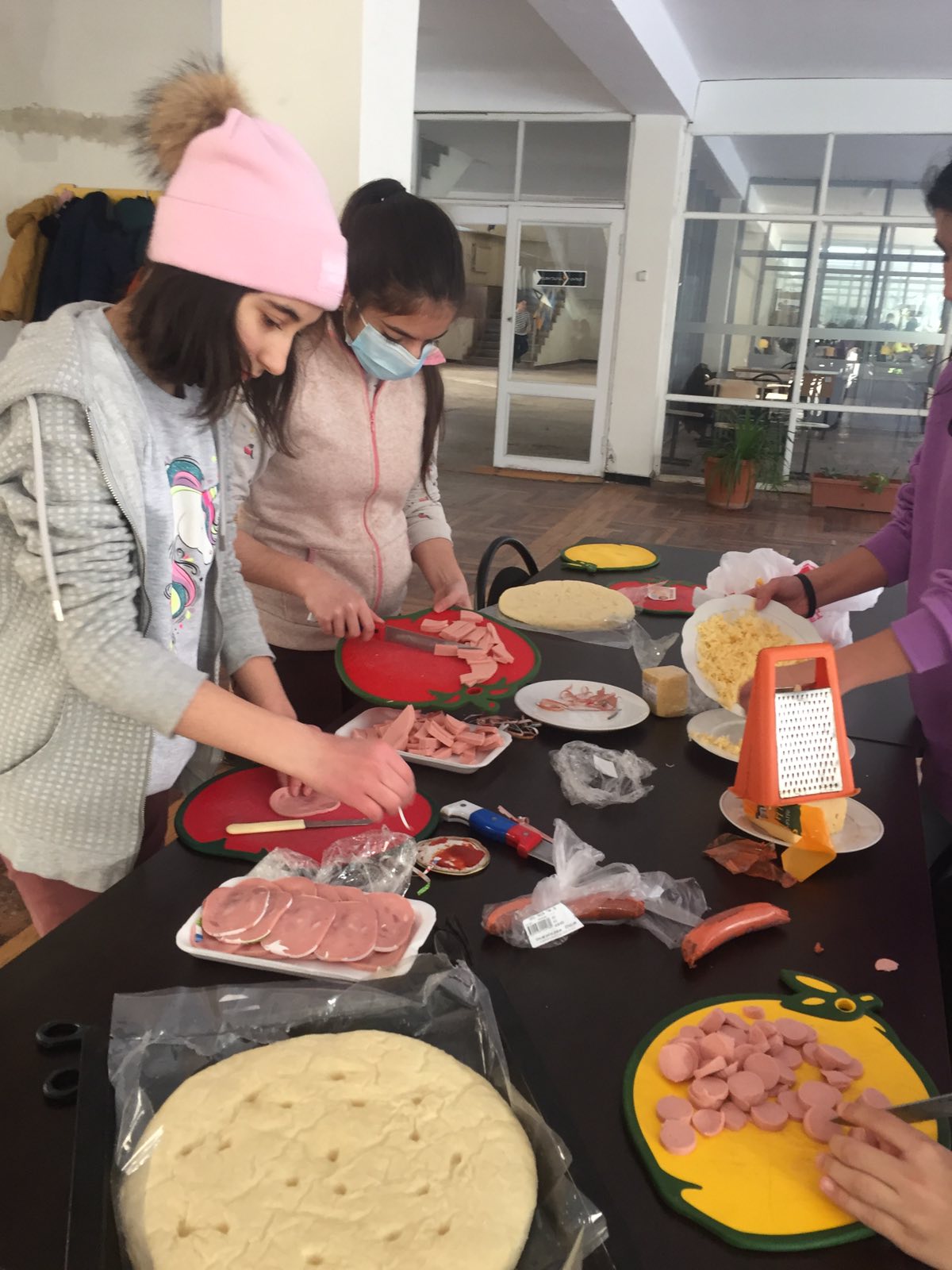 Այսօր մենք հայտարարեցինք համեղ օր, քանի-որ պետք է պատրաստեինք պիցցա: Միասին գումար հավաքեցինք, և մի քանի հոգի գնացին մոտակա խանութ և գնեցին անհրաժեշտ բաղադրիչները: Խոհանոցում մենք սկսեցին պատրաստել: Մինչ մենք աղջիկներով պատրաստում էինք, տղաները խաղում էին <<Suspend>> խաղը: Այն բավականին հետաքրքիր էր և ստուգում էր մարդու տրամաբանական հավասարակշռությունը: Քանի-որ լոշիկները 7 հատ էին, տարբեր բաղադրիչներով պատրաստեցինք: Երբ արդեն պիցցաները պատրաստ էին, բոլորս միասին ճաշակեցինք այն: Ասեմ, որ բավականին համեղ էին ստացվել: