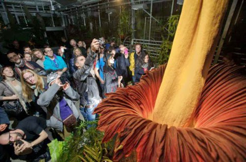 Աշխարհի ամենամեծ ծաղիկը՝ Տիտան Արումը (հսկայական Ամորֆոֆալուսը), ունի 2,27 մետր բարձրություն, դեղին վարսանդ և մուգ կարմիր թերթիկներ։ Ծաղկի պալարը կշռում է ավելի քան 13 կգ։ Բնական պայմաններում Ամորֆոֆալուսը ժամանակին աճել է միայն Սումատրա կղզում, սակայն փաստացի ոչնչացվել է տեղի բնակիչների կողմից, ովքեր ծաղիկն անվանել են «դիակային», «օձային արմավենի» եւ «վուդուների շուշան», իր տարօրինակ տեսքի, նաեւ` նողկալի հոտի համար: Ամբողջ աշխարհում Տիտան Արումի ծաղկումը ջերմոցային պայմաններում, տեղի է ունեցել 134 անգամ։ Այս անգամ այն ծաղկել է Շվեյցարիայի Բազել քաղաքում: Այս բույսի ծաղկումն առհասարակ բացառիկ իրադարձություն է, որը տեղի է ունենում 20-40 տարին մեկ` 2 օրվա ընթացքում։